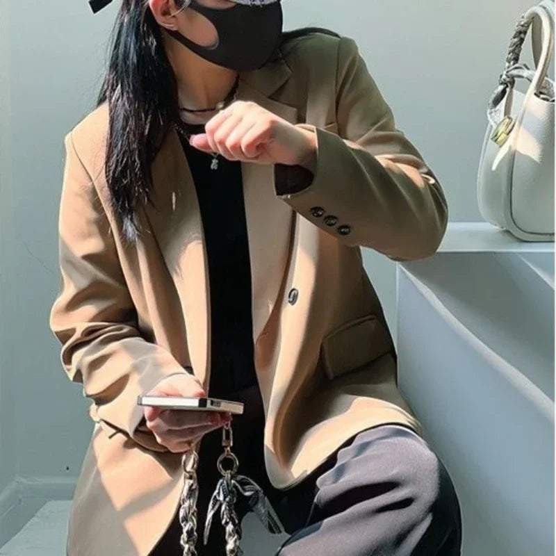 Clothes Jacket Brown Over Coats for Women Black Blazer Woman Dress Outerwears Loose Long Solid on Promotion Sale 2024 Autumn New